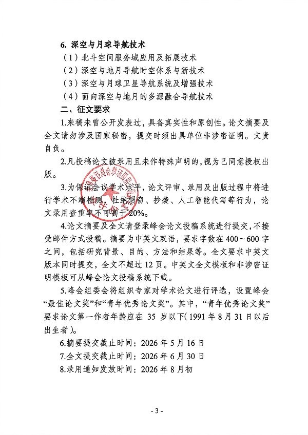 2026年峰会学术交流设置6大议题,包括综合PNT体系与新技术、卫星导航与增强技术、时空基准与定轨技术、导航信号与终端技术、无人系统导航技术、深空与月球导航技术等。