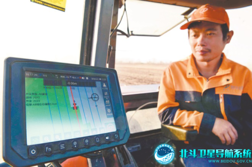 职工通过北斗自动驾驶系统监测拖拉机作业